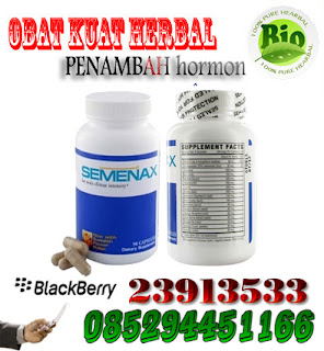 Manfaat :Jika anda merasa belum memberikan yang terbaik untuk istri karena masalah seksual yang sering mengganggu.Obat Penyubur Sperma dan penambah / pengental air mani encer Semanax kapsul herbal alami akan memperbaiki semuanya dengan banyaknya mnafaat yang di hasilkannya.